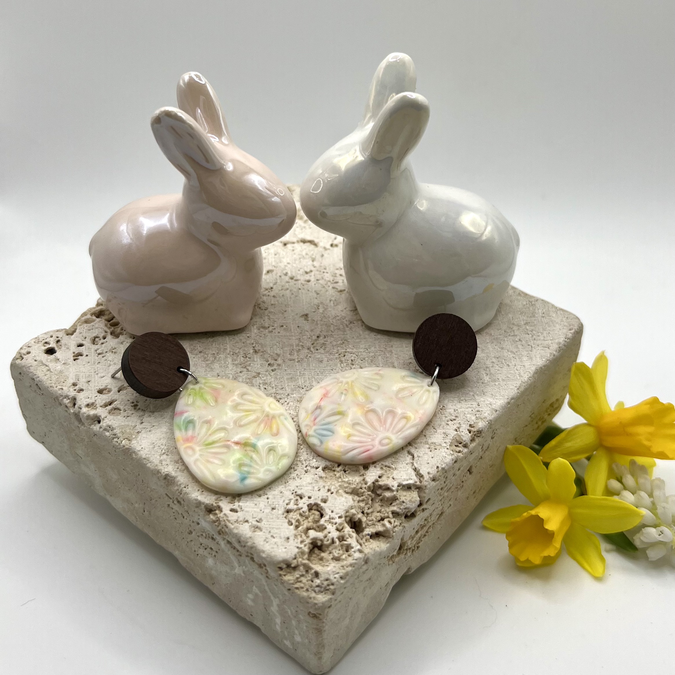 Frühlingsfrisch, einzigartig und einfach zauberhaft! Diese Ohrringe bringen den Osterzauber direkt an deine Ohren. Die sanfte Osterei-Form wird von einem traumhaften Pastellverlauf in zartem Rosa, Himmelblau und Frühlingsgrün umspielt – als hätte der Osterhase selbst mit Aquarellfarben gezaubert! ✨