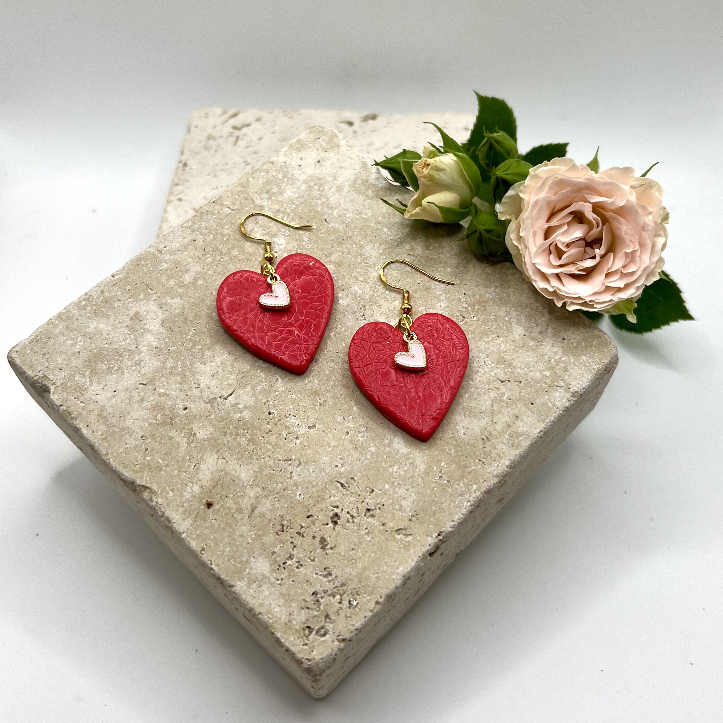 Diese herzförmigen Ohrringe in einem sanften Rosaton sind alles andere als gewöhnlich. Ein feines Muster, das an eine Lebensblume erinnert, sorgt für einen eleganten Touch. Das kleine rosa Herz als Eyecatcher setzt einen verspielten Akzent und macht die Ohrringe zu etwas Besonderem.