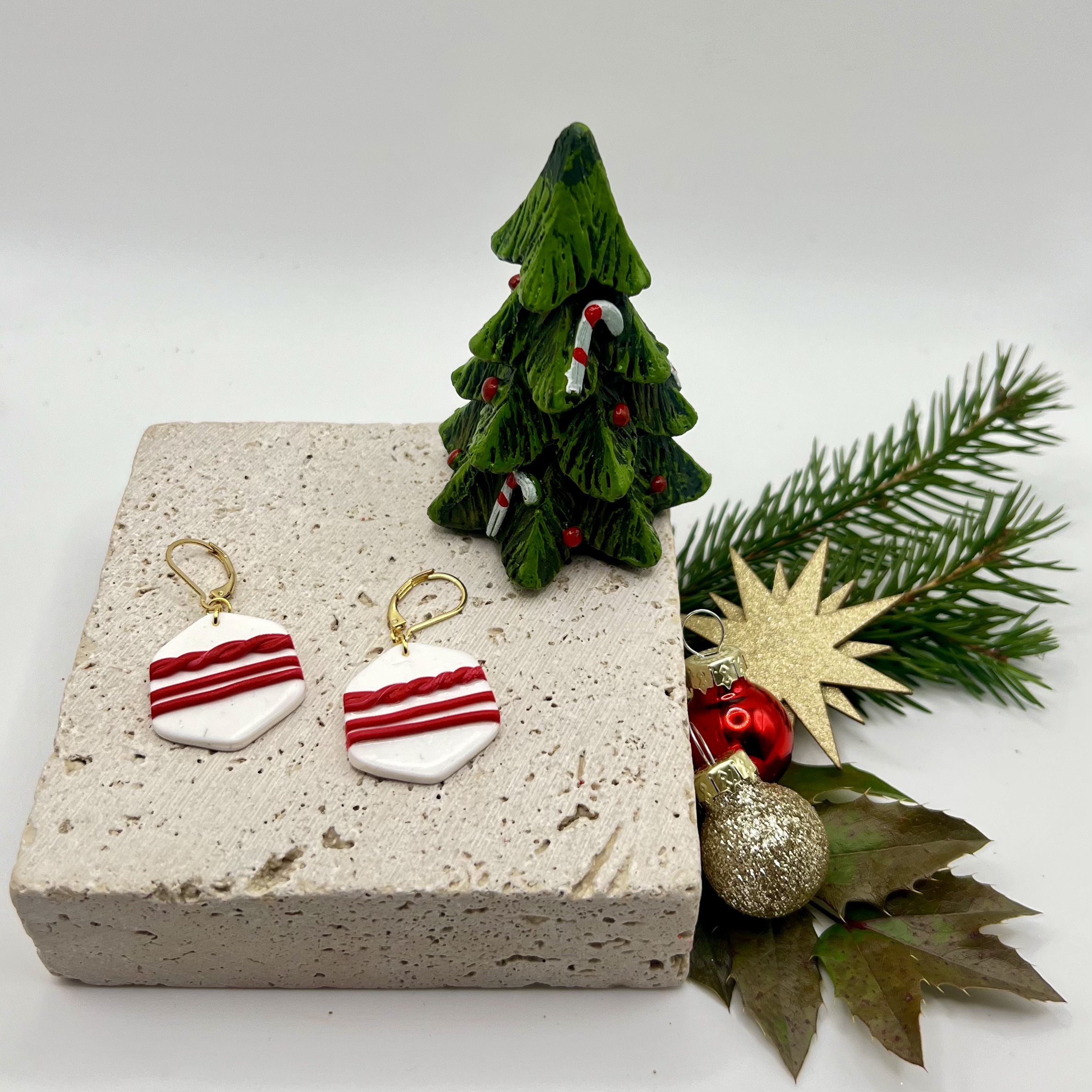 Entdecke  die „rote Gemütlichkeit“ – ein Ohrring, der die Wärme und Gemütlichkeit des Winters einfängt. Die sechseckige Form, kombiniert mit einem klaren Weiß, verleiht ihm eine moderne Eleganz. Ein roter Streifen mit feinem Kordelmuster zieht sich durch das Design und erinnert an liebevoll gestrickte Winteraccessoires. Perfekt für die kalte Jahreszeit – ein stilvolles Statement, das jedes Outfit aufpeppt und die Vorfreude auf festliche Momente weckt.